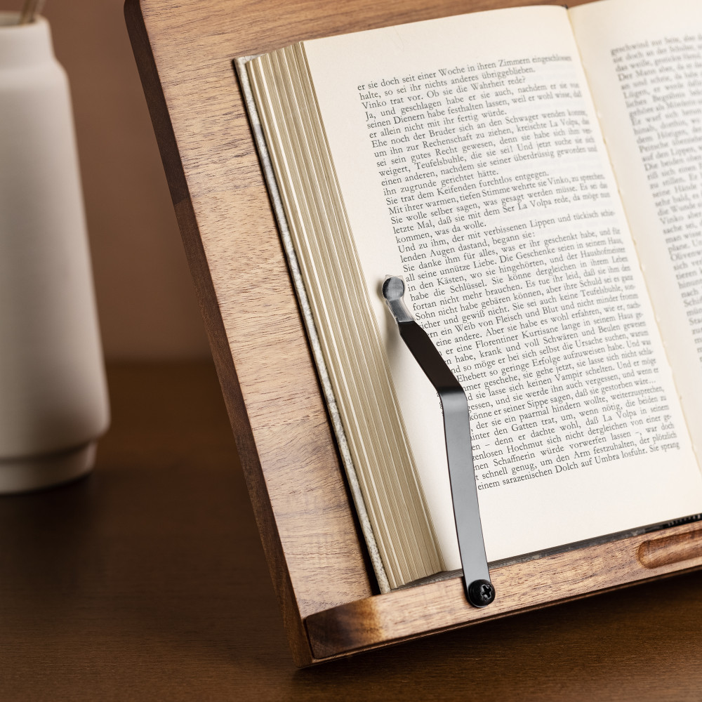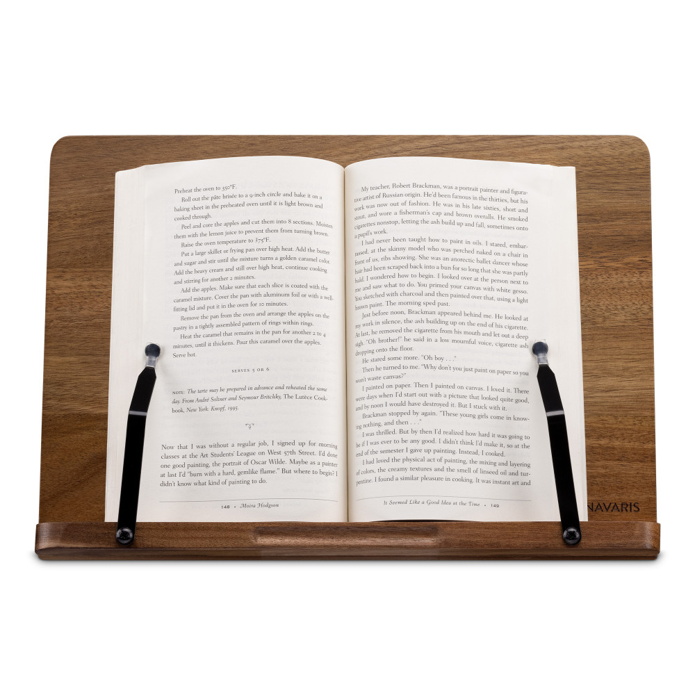 Suport pentru carti din lemn de salcam Navaris, 2 brate reglabile, 33 x 24 cm, Maro, 52801.2.18