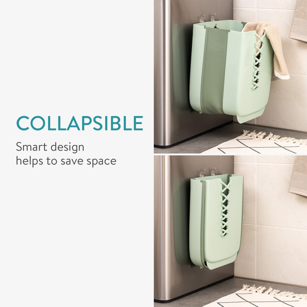 Cos rufe pliabil Navaris, 30 L, montaj pe perete, kit montaj inclus, verde, polipropilena/cauciuc