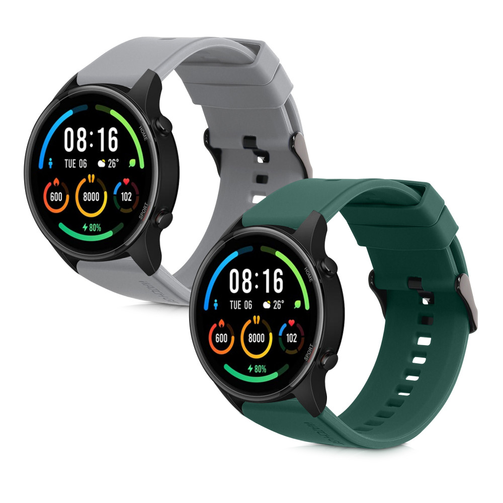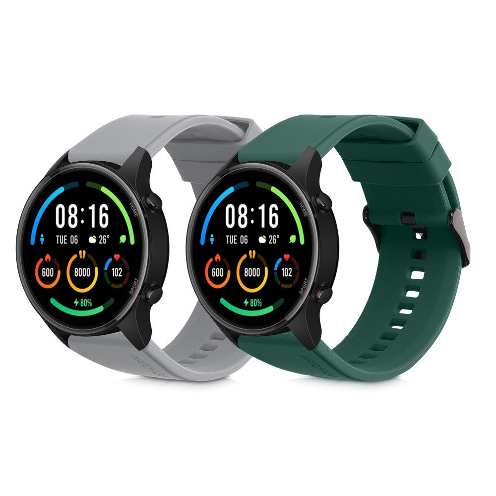 Set 2 curele pentru Xiaomi Mi Watch Color Sport/Watch S1 Active, Kwmobile, Gri/Verde, Silicon, 58971.02