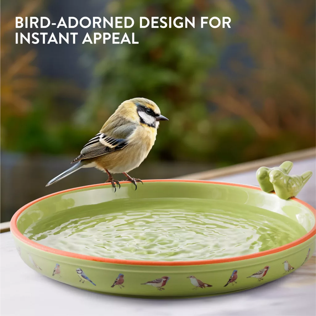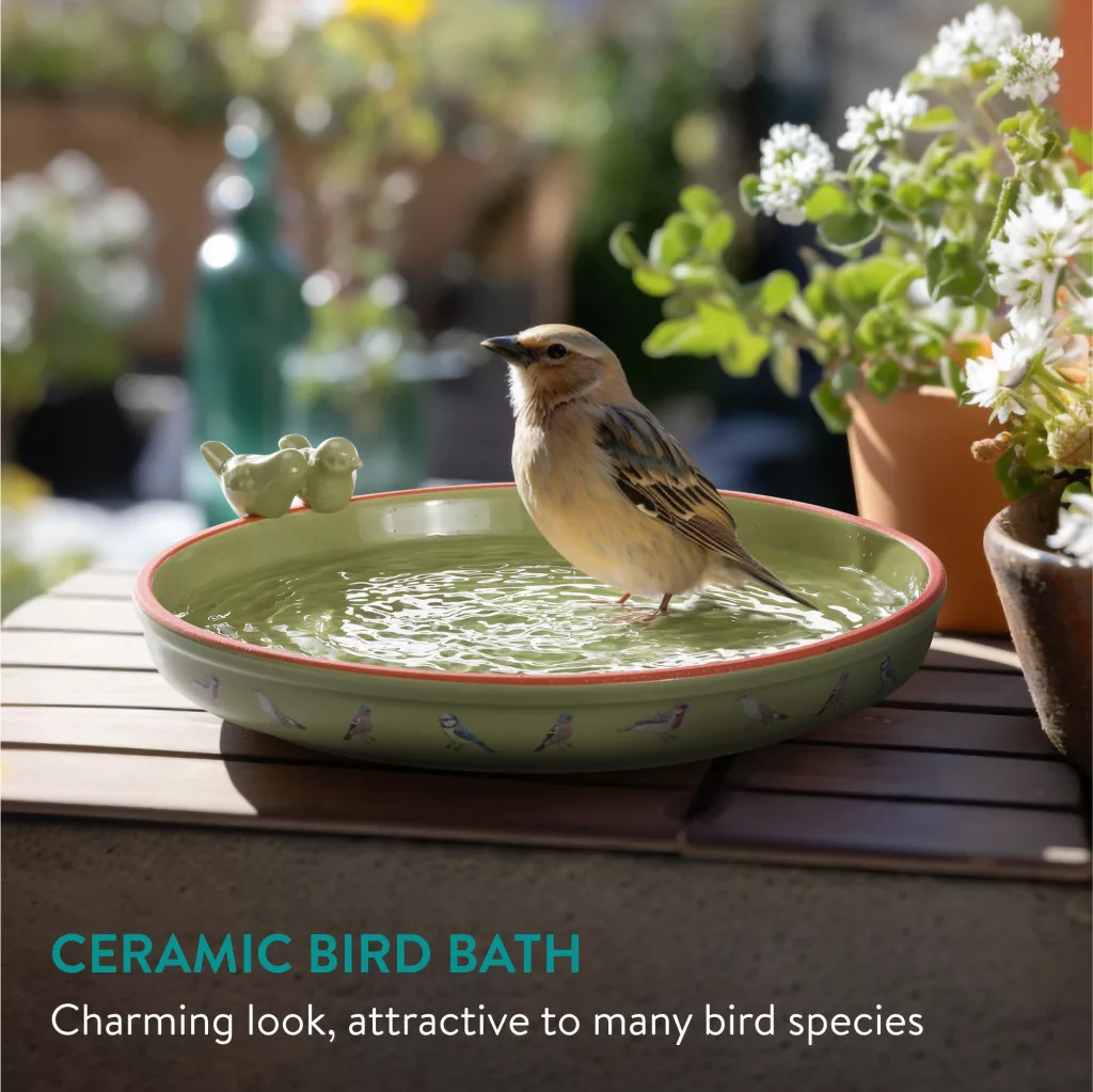 Baie pentru pasari rotunda Navaris, ceramica, 25 cm, pentru gradina, 61699.07