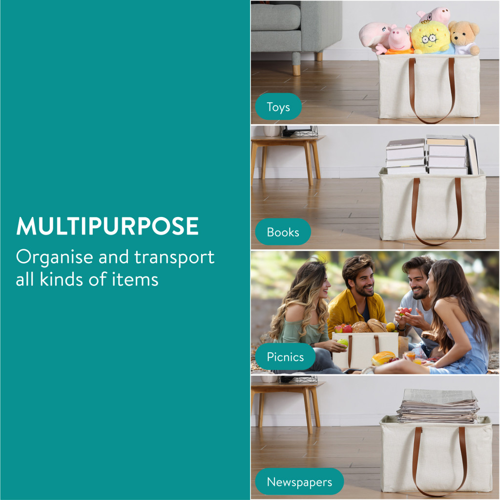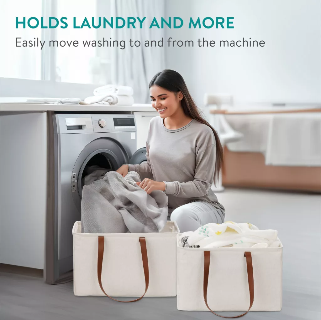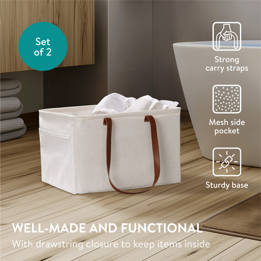 Set 2 cosuri rufe Navaris, 37L fiecare, manere laterale, inchidere cu snur, bej, plastic