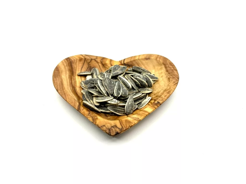 Bol in forma de inima din lemn de maslin, latime 14 cm, pentru gustari si servire